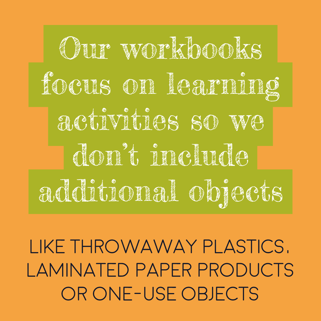 Our focus is on learning activities, not providing kids with additional objects, which are often made from problematic materials. Some subscription boxes for kids include things like throwaway plastics, laminated paper products and one-use objects which are generally terrible for the environment.