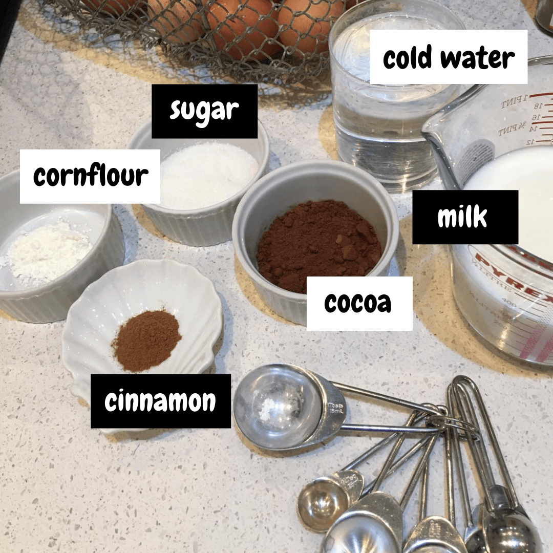Mix together the cinnamon, cocoa and sugar in a saucepan.