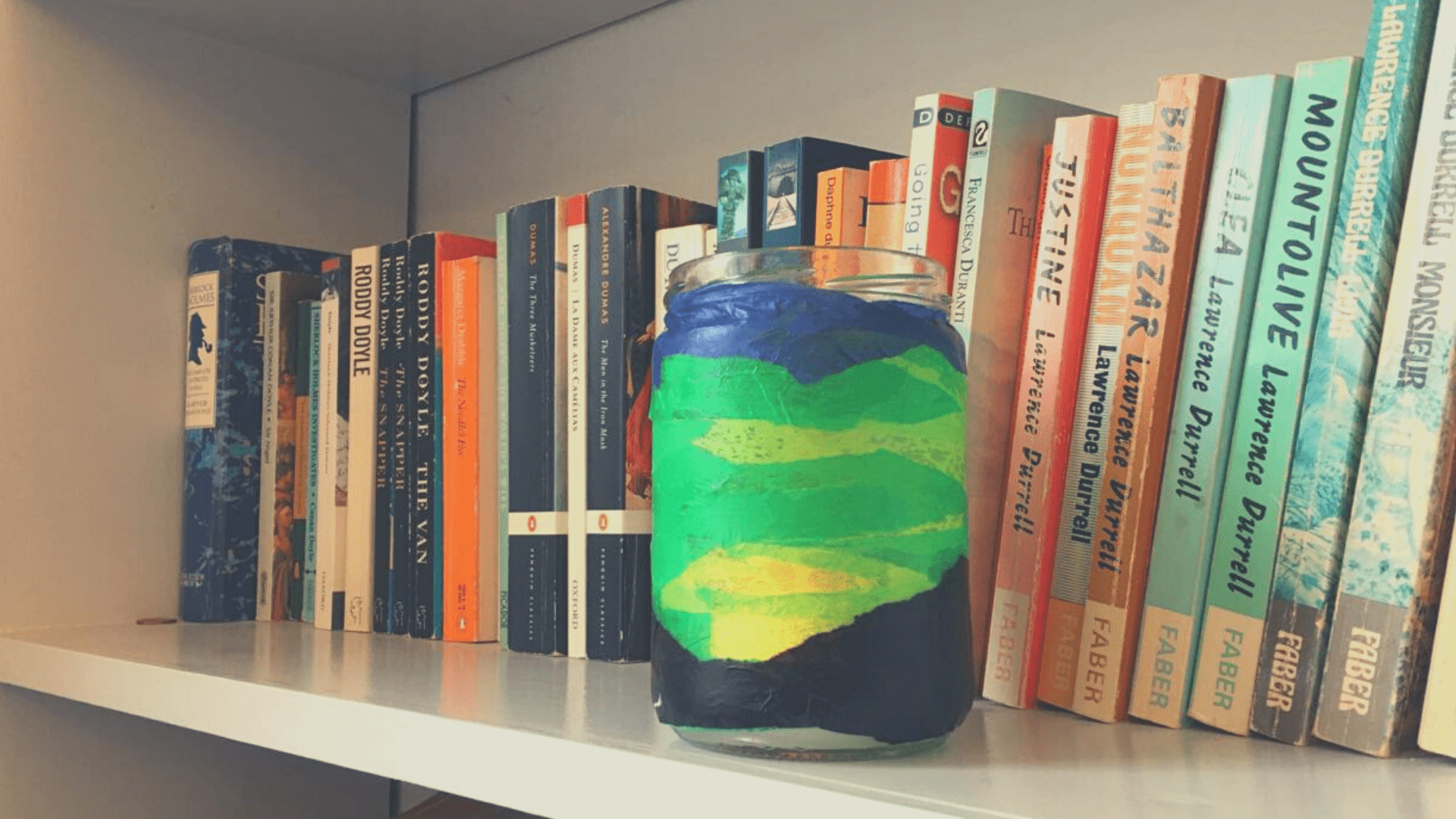 4. Once dry, place a tealight inside the jar. The flickering light of the candle will shine through the tissue paper, creating an Aurora Borealis effect.