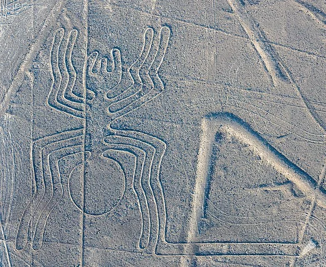 The Nazca Lines are a group of geoglyphs, which means drawing on the ground. They were made about 2,000 years ago by people making lines on the desert floor.