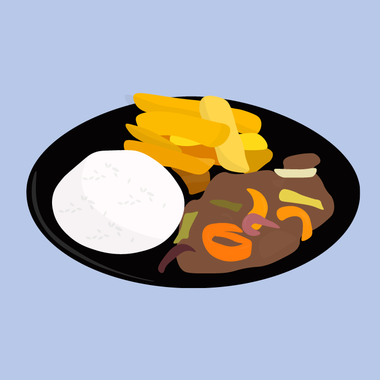 is a type of Peruvian stir-fry made with beef slices and vegetables like onions. Sometimes it is served with chips.