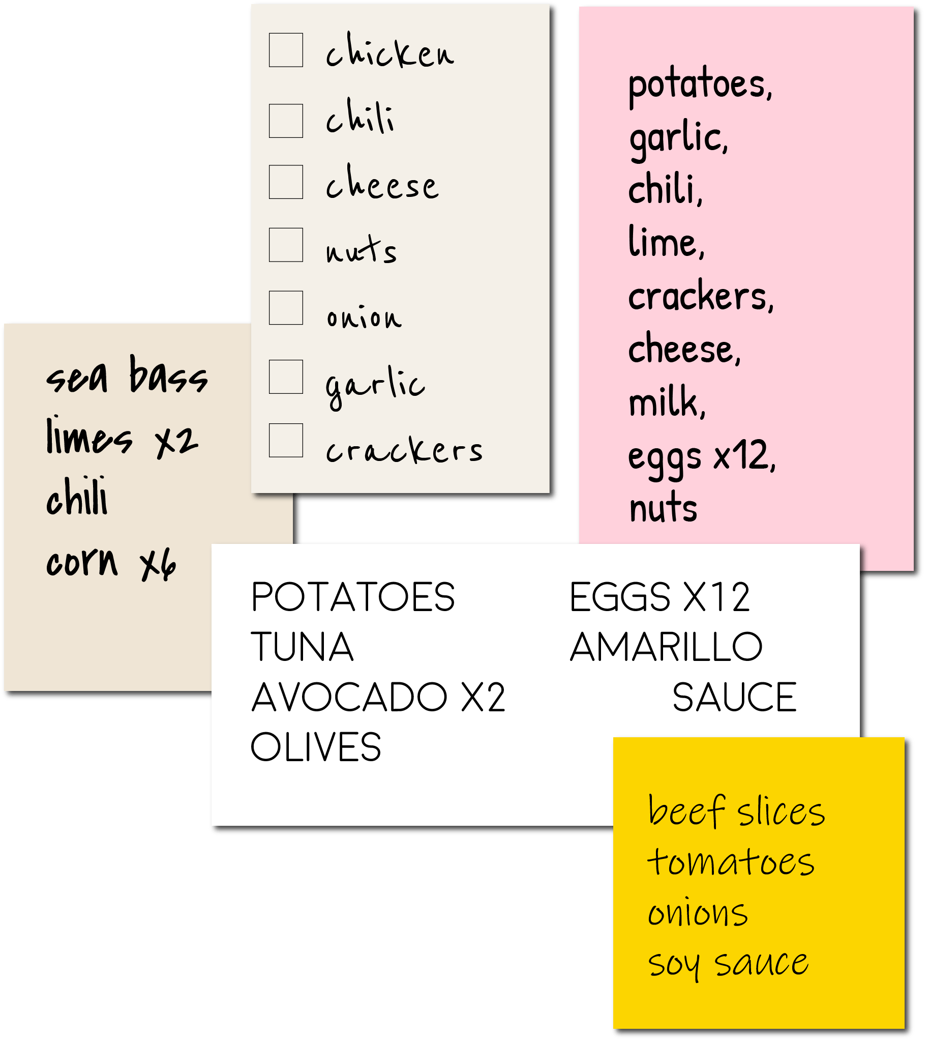 The tias haven’t written their names on the shopping lists! Manuel does know which meal is each tia’s favourite though.