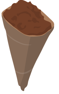 A cone of a palm leaf, filled with coconut, sugar and a flavour like orange, guava or pineapple.