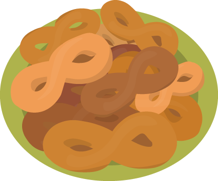 Doughnuts made in the shape of an 8, but made with yucca not flour.