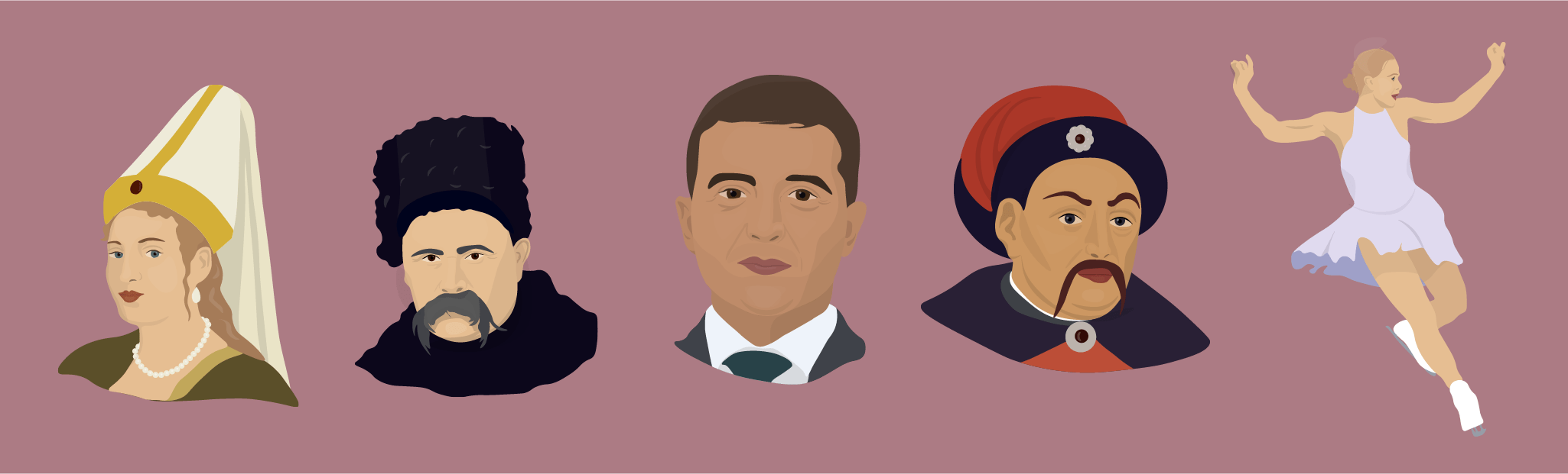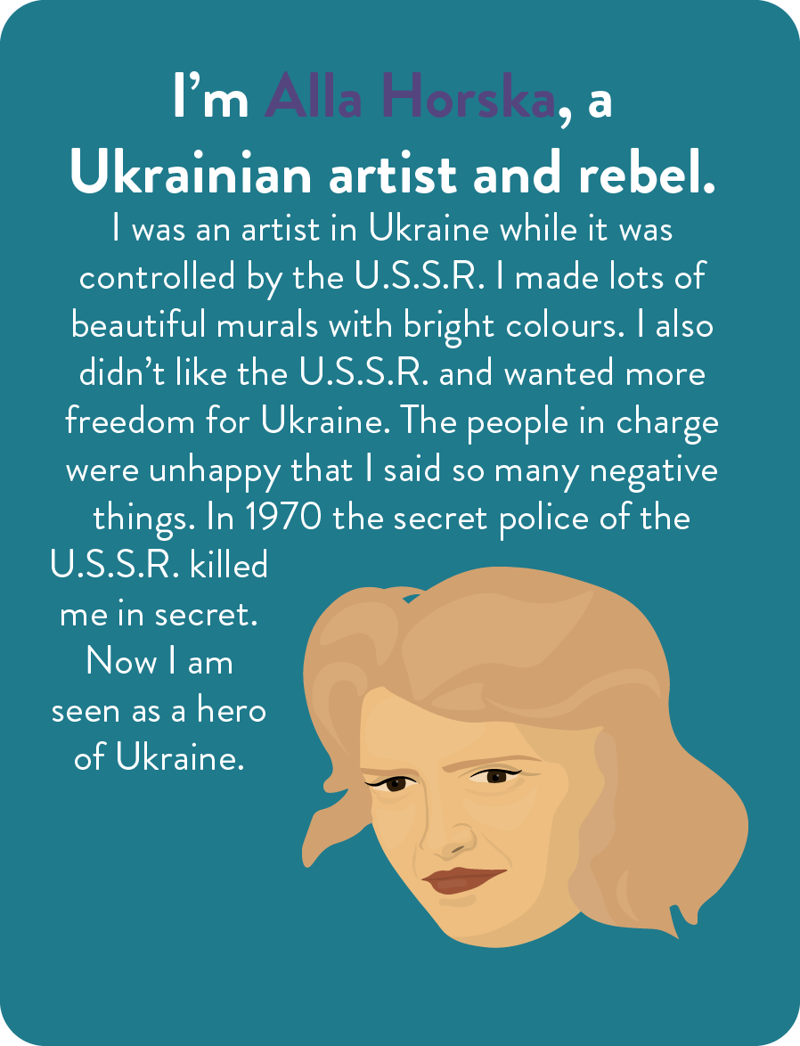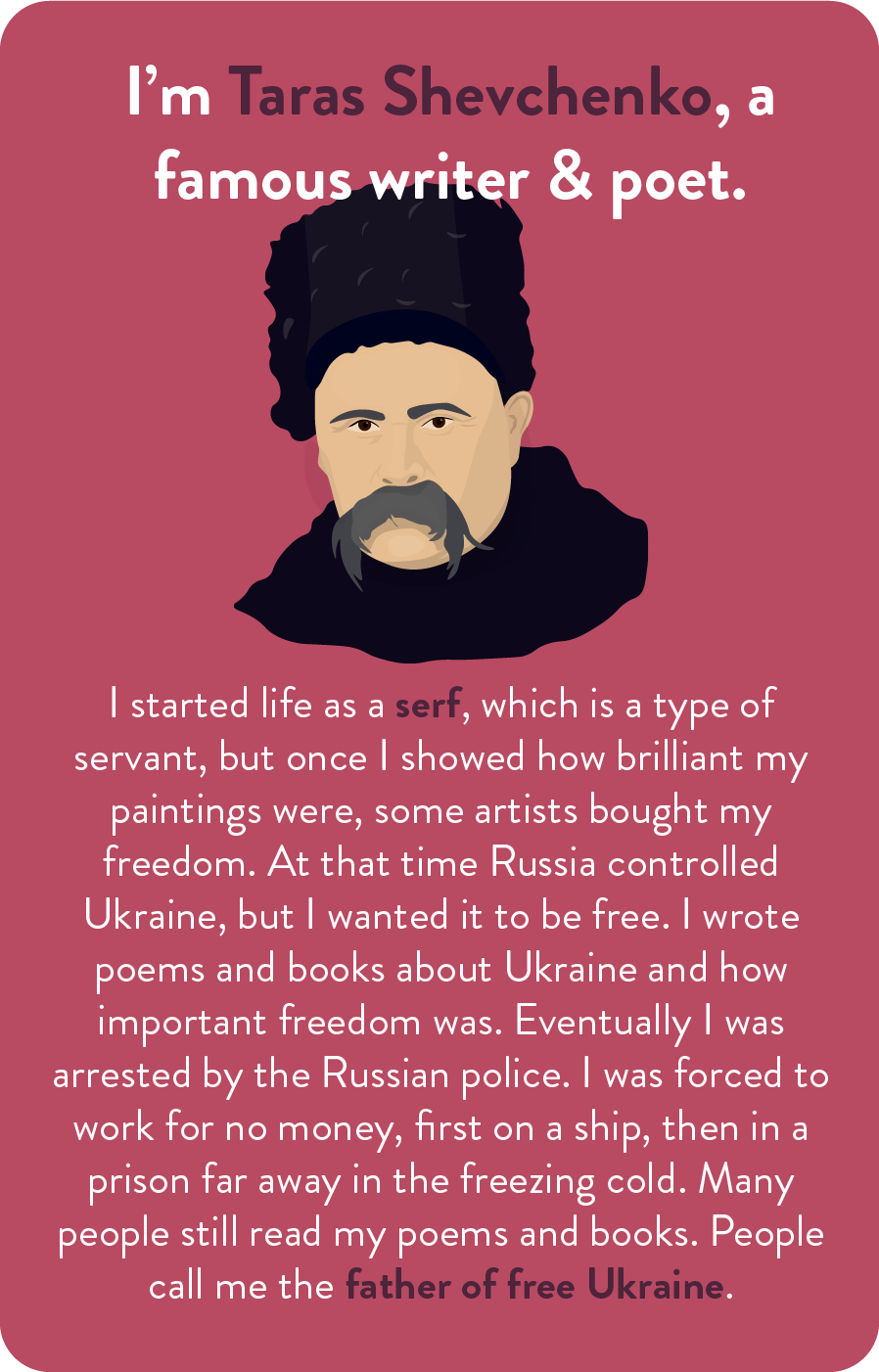 Through the workbook you’ll see some colourful boxes with people in them. These are famous people from through Ukraine’s history. You can click on the pictures to make them bigger and learn a little more.