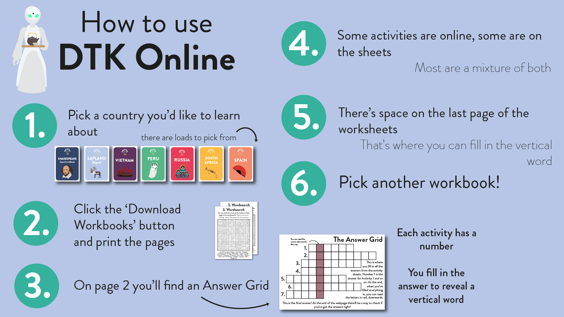 We’ve made a little video to show how the workbooks work. They’re a combination of online activities and printable worksheets - you’ll need both to be able to complete them.