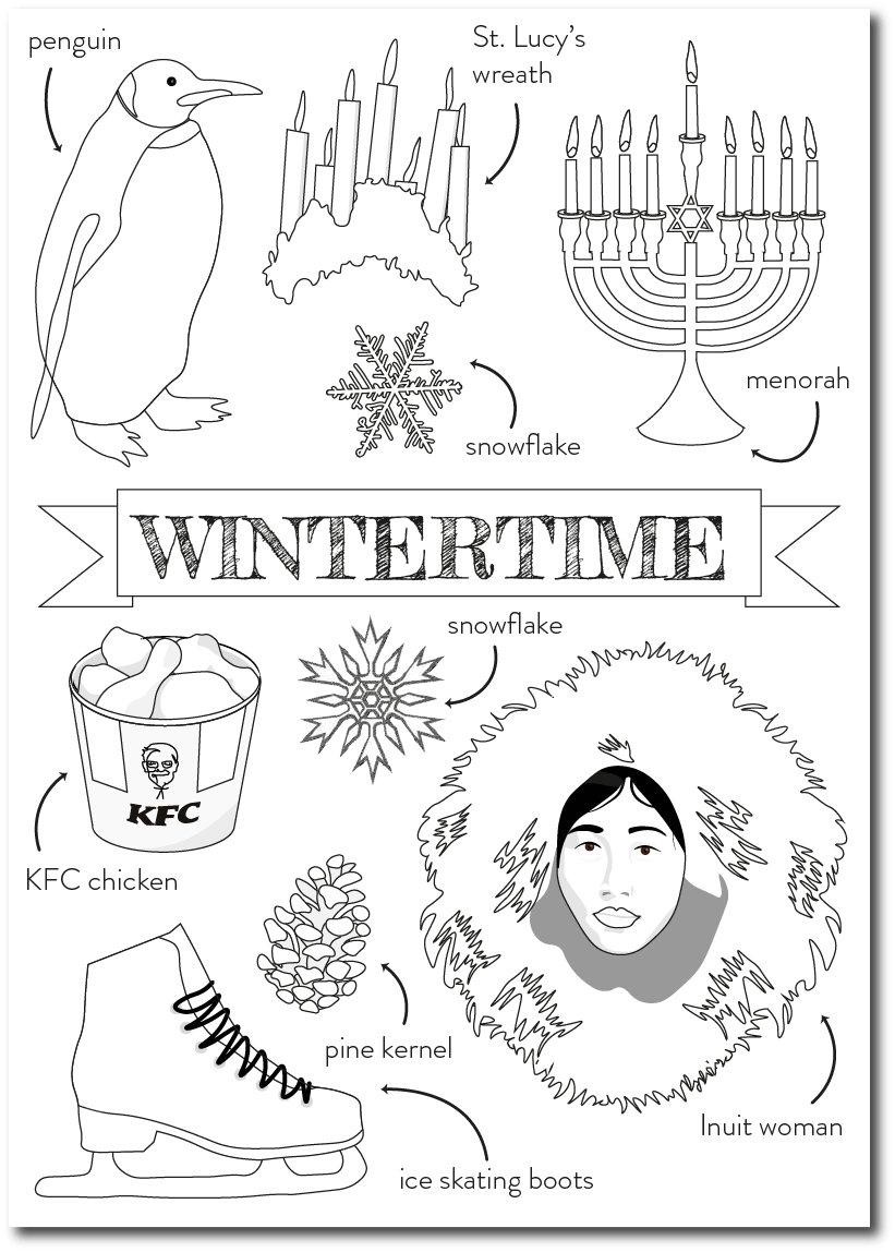 This workbook we decided not to look at one country, but lots of countries! And instead of just looking at Christmas, we decided to look at winter and all the fun things we can do.