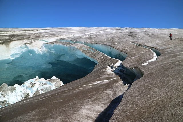 The water that melts from glaciers has to go somewhere. Usually it goes into the sea, leading to sea levels getting higher and flooding the land.